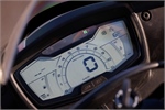 Das Cockpit besteht aus einem gut ablesbaren LCD‑Instrument, das alle wesentlichen Informationen wie Geschwindigkeit, Drehzahl, Tankfüllstand, Restreichweite, Durchschnitts‑ und Momentanverbrauch sowie Trip‑Daten anzeigt. Zusätzlich informiert das Display über den Status von Traktionskontrolle und ABS sowie weitere Fahrzustandsparameter. Über eine optionale Aprilia‑MIA‑Schnittstelle kann das Instrument mit dem Smartphone gekoppelt werden; dann lassen sich Anruf‑, Musik‑ und Benachrichtigungsfunktionen sowie detailliertere Fahrdaten komfortabel nutzen.