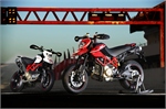 HYPERMOTARD 1100 EVO SP DIE PERFEKTE SYMBIOSE VON SUPERMOTO UND RENNSPORT Die Hypermotard überraschte und begeisterte bei ihrer Markteinführung auf Anhieb. Look and Symbiose zweier Welten: Es geht um Speed, Adrenalin, Performance, Sieg und Niederlage. Kurzum, das feeling einer Supermoto-Maschine, Technologie der Ducati Rennsportwelt. In Summe die perfekte Mischung. Die Hypermotard EVO ist keine „Revolution“, sie kann einfach gesagt alles etwas besser als je zuvor. Leichter, stärker, mehr Drehmoment. Die Frischzellenkur ist hiermit vollbracht! NICHT NUR BESSERE KOMPONENTEN ─ EIN ANDERES MOTORRAD Es wurden nicht einfach bessere Komponenten verbaut, die SP ist ein anderes Motorrad! Mit der längeren Gabel und dem längeren Öhlins Federbein ergibt sich ein komplett andere Geometrie: sportlicher, viel sportlicher! Das Ducati Corse Design unterstreicht dies mit zahlreichen Carbonteilen (Kotflügel vorne und hinten, Gabelschutz und Seitenverkleidung) wie auch die geschmiedeten Marchesini Felgen. Diese Mischung hat das Gewicht nochmals ordentlich reduziert. Die Monoblocks der Superbikes sorgen in dieser aufregenden Kombination zusätzlich für unfassbare Verzögerung. Also, auf in den Kampf! |