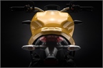 Das kurze, kompakte, schlanke Heck, getragen vom klassischen Gitterrohrrahmen, platziert den Fahrer in einer Höhe von 785 oder 810 mm auf dem typischen Monster Polster. Der Hilfsrahmen trägt die Beifahrer-Fußrasten, die jetzt getrennt von den Fahrerrasten montiert sind. Diese Konstruktion verleiht der Monster 821 eine sportliche Linie bei gleichzeitig verbesserter Ergonomie. Der neue, Euro 4-konforme Schalldämpfer leitet sich vom Auspuff der Monster 1200 R ab.