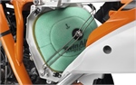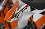 Die perfekte Synthese aus dem spielerischen Handling einer 125er und einer eindrucksvollen Motorleistung, die nahezu an die einer 250er heranreicht. Die 200 EXC ist serienmäßig mit einem E-Starter ausgestattet, für 2014 erhält sie nun einen deutlich stärkeren Startermotor für erhöhte Startsicherheit. Die 200 EXC ist die erste Wahl für alle, die bestes Handling, erstklassigen Komfort und reichlich Power außerhalb der kompetitiven Klassengesellschaft suchen und denen Spaß, leichte Fahrbarkeit und geringere Kosten besonders am Herzen liegen. BODYWORK Das Bodywork wurde hinsichtlich Ergonomie und Funktion so gestaltet, dass das gesamte Motorrad bis ins letzte Detail eine vollkommene Harmonie mit dem Fahrer bildet. AIRBOX Das ausgeklügelte Design der Airbox garantiert gleichzeitig optimalen Schutz des Luftfilters vor Verschmutzung und maximalen Luftdurchsatz für höchste Performance. Airbox-Deckel werden im 2-Komponenten-Verfahren und mit neuen Inmould-Grafiken gefertigt. Der Wechsel des Filters erfolgt sehr schnell und ohne Werkzeug. Darüber hinaus ermöglichen zwei zusätzliche Laschen am Deckel auf Wunsch auch eine Sicherung mit Schrauben. LENKER Alle EXC-Modelle sind mit einem superstabilen, konifizierten Neken-Lenker aus hochfester Aluminiumlegierung ausgestattet. Nach bewährtem KTM-Standard kann der nun schwarz eloxierte Lenker wahlweise in vier Positionen fixiert werden. Im Modelljahr 2015 sind die Handprotektoren aus einem neuen Material gefertigt, um noch mehr Schlagzähigkeit zu erreichen. TACHO Der neue Tacho von MAE integriert sämtliche Kontrollleuchten, außer denen für die Blinker, in ein einziges Bauteil. Dies gibt dem Cockpit ein saubereres und aufgeräumteres Aussehen und macht die verfügbare Information klar und leicht ablesbar. RÄDER Für die Räder kommen neue, schwarze 7050 T6 Aluminium-Giant-Felgen, schwarz beschichtete Speichen mit leichten Aluminium-Nippeln und leichte CNC-bearbeitete Naben zum Einsatz, um höchste Stabilität bei minimalem Gewicht zu erzielen. Die aufgezogenen Maxxis-Enduro-Reifen wurden speziell für KTM entwickelt und glänzen mit perfekter Traktion sowie ausgezeichneter Performance. BREMSEN Hightech Bremsen von Brembo gehören seit jeher zur Serienausstattung der KTM-Offroad-Bikes und sind zusammen mit den leichten Wave-Bremsscheiben das Maß aller Dinge in Sachen Bremsentechnologie. Als die klassenbesten Bremsen im Endurosport bleiben sie für das Modelljahr 2015 unverändert. MOTOR Der Motor der KTM 200 EXC erhält für Modelljahr 2015 eine neue Vergaserabstimmung, um eine bessere und gleichmäßigere Leistungsentfaltung zu erreichen. RAHMEN Das moderne Rahmendesign der 200 EXC aus leichten, hochfesten Chrom-Molybdän-Stahl-Profilrohren kombiniert maximale Längssteifigkeit mit optimaler Torsionssteifigkeit. Es garantiert leichtes Handling und präzises Einlenkverhalten, aber auch ausgezeichnete Fahrstabilität. Damit glänzt der neue Rahmen nicht nur durch die neue Farbe, er bildet auch eindeutig die Benchmark in Sachen Gewicht und Stabilität. Die Rahmenfarbe erstrahlt im Modelljahr 2015 im gleichen Orange wie beim KTM-Factory-Team und lässt das Design noch attraktiver aussehen. Darüber hinaus ist er pflegeleichter und bietet mehr Platz zur Aufnahme von Tank und anderen Komponenten. Durch das Rahmendesign werden in Verbindung mit dem hinteren PDS-Dämpfungssystem einwirkende Stöße des Hinterrades optimal aufgenommen und abgeleitet. SCHWINGE Die Aluminiumguss-Schwinge wurde mit modernster Berechnungs- und Simulationssoftware entwickelt und hinsichtlich Designs und Wandstärke auf minimales Gewicht bei optimaler Steifigkeit und exakt definierter Flexibilität ausgelegt. FEDERUNG/DÄMPFUNG Die KTM 200 EXC besitzt ein individuelles Suspension-Setting, optimal abgestimmt auf Gewicht und Motor. Die hochwertigen WP-Federelemente wurden speziell auf den Enduro-Einsatz ausgelegt und sorgen für maximale Traktion und reichlich Komfort. Hinten arbeitet ein PDS-Federbein von WP Suspension mit direkter Anlenkung an der Schwingenoberseite. Für das Modelljahr 2015 wurde das PDS-Federbein mit einer neuen Monoseal-Dichtung überarbeitet, für bessere Dichtfunktion und einfachere Wartung. Das breite Spektrum an Einstellmöglichkeiten von Zugstufe sowie High- und Lowspeed-Druckdämpfung sind bei KTM Standard. GABELBRÜCKEN Die Gabelbrücken sind speziell für den Enduro-Einsatz konzipiert und gewährleisten ein präzises Handling durch die Unterstützung des Gabel-Flex. Der Fahrer erhält präzise Rückmeldungen vom Vorderrad auch im härtesten Gelände, zur Steigerung von Fahrsicherheit und Geschwindigkeit. |
