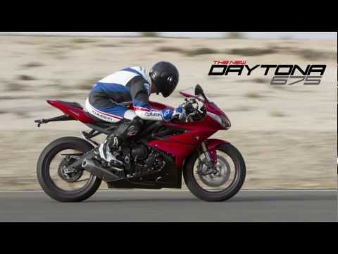 Als die Triumph Daytona 675 im Jahr 2006 erstmals auf den Markt kam, mischte sie mit ihrem Dreizylindermotor und einem Hubraum von 675 ccm die Klasse der SupersportBikes auf. Zugleich setzte sie einen neuen Maßstab für diese Klasse und brachte die etablierte Reihenfolge gehörig durcheinander. Seit ihrem Debüt hat die Daytona beständig bei Vergleichstests gewonnen und wurde weltweit mit Preisen überhäuft. Sogar Superbikes mit einer höheren Leistung ließ sie im prestigeträchtigen internationalen "Masterbike"-Vergleichstest keine Chance und gewann diesen anspruchsvollsten und umfassendsten Test unter allen Sportmotorrädern zwei Jahre hintereinander. Die Rennsportversionen gewannen Titel auf der ganzen Welt, und auch nach sechs Jahren feiert sie noch Siege auf der Rennstrecke. Das rasiermesserscharfe Design und der knurrende, muskelbepackte Charakter der Daytona haben ihre Besitzer gleichermaßen überzeugt. Für das Modelljahr 2013 führt Triumph eine komplett neue Daytona 675 und Daytona 675R ein. Das Motorrad verfügt über einen brandneuen Motor, einen neuen Rahmen, eine frische und ausgeklügelte Verkleidung sowie viele weitere Modifikationen, die auf den Erkenntnissen beruhen, die Triumph aus dem gewaltigen Erfolg des scheidenden Modells erlangt hat. Ein paar wenige Optimierungen und Modifikationen hätten ausgereicht, um die 675 weiter vorne mitfahren zu lassen. Doch die Daytona 2013 ist erneut auf dem Weg, neue Maßstäbe zu setzen. Heraus gekommen ist ein Motorrad, das 1,5 kg leichter als das Vorgängermodell ist, über mehr Leistung verfügt, ein breiteres Drehzahlband aufweist, eine höhere Präzision sowie klarere Rückmeldung bietet und sich agiler fährt. Es ist schneller auf der Rennstrecke, besser auf der Straße und bietet seinem Besitzer noch mehr Fahrspaß. Der neue Motor ist das Herzstück der Daytona 2013. Er ist leistungsstärker und zeigt einen markanten neuen Charakter. Die wichtigste Veränderung ist die größere Bohrung und ein kürzerer Hub. Dies ermöglicht eine maximale Drehzahl von 14.400 U/min, was mehr Leistung und ein breiteres nutzbares Drehzahlband mit sich bringt. Dazu ist der neue Motorblock vom Kurbelgehäuse getrennt und die Zylinderlaufflächen sind keramikbeschichtet. Dadurch kann der Motorblock stabiler ausgeführt werden, um den höheren Drücken standzuhalten. Die Leistung steigt um drei auf 128 PS (94,2 kW), wobei diese bereits bei 12.600 U/min zur Verfügung steht und über einen größeren Drehzahlbereich abrufbar ist. Das Drehmoment konnte über das gesamte Drehzahlband gesteigert werden, wobei das maximale Drehmoment um zwei auf 75 Nm angestiegen ist. Auf der Einlassseite befinden sich zwei neue Einspritzdüsen pro Zylinder, die ihren Teil zum Leistungs- sowie Drehmomentplus beitragen. Zudem konnte dadurch die Präzision der Kraftstoffeinspritzung optimiert und der Verbrauch gesenkt werden. Erstmals werden Titanventile eingesetzt, die höhere Motordrehzahlen erlauben und den TriumphIngenieuren die Möglichkeit boten, die Form der Ventile für einen optimierten Gasstrom zu verbessern. Diese Maßnahme war so erfolgreich, dass der Ventildurchmesser trotz der größeren Bohrung nicht angepasst werden musste. Dies begünstigte auch der neue, größere Ansaugtrakt, bei dem die Luft direkt durch den Steuerkopf in die Airbox strömt. Als besonderen Bonus steigert diese Konstruktion die Qualität und Lautstärke des charakteristischen, knurrenden Ansauggeräusches des Dreizylinders. Die neue Auspuffanlage stellt eine große technische wie optische Veränderung dar, denn die kompakte Einheit ist jetzt unter dem Motor anstatt unter dem Soziussitz positioniert. Die Ingenieure bei Triumph hatten das Ziel, die Masse des Motorrads soweit wie möglich zu zentralisieren und das Gewicht nach vorne zu verlagern – beides Schlüsselmerkmale, mit denen die neue Daytona noch agiler und bei hohen Geschwindigkeiten noch stabiler wird. Das Getriebe verfügt über eine neue Anti-Hopping-Kupplung, die eine leichtere Betätigung ermöglicht und ein Stempeln des Hinterrades bei hartem Abbremsen verhindert. Diese wird durch das Motormanagement unterstützt, das die Drosselklappen öffnet, um die Motorbremse zu reduzieren. Neben der Integration des neuen, innovativen Ansaugkanals kommt der Rahmen nun mit weniger Teilen aus. Das erzeugt ein klares, überzeugendes Design mit einer schärferen Geometrie und einem kürzeren Radstand, um die veränderte Gewichtsverteilung voll ausnutzen zu können. Der Heckrahmen aus Aluminium-Druckguss sieht nicht nur fantastisch aus, sondern trägt zum schlanken, pfiffigen Design an der Heckpartie des Motorrads bei. Die Radaufhängungen sind neu – vorn werkelt die neueste Upside-Down-Cartridgegabel von KYB (ehemals Kayaba), hinten ein überarbeitetes Federbein. Serienmäßig ist die Daytona mit den Hochleistungsreifen vom Typ Pirelli Supercorsa ausgestattet. Das neue abschaltbare ABS wiegt nur 1,5 kg und verfügt über einen Rennstreckenmodus für späten Eingriff, der einen Drift des Hinterrads erlaubt. Die Ergonomie wurde leicht verändert, wobei die Sitzhöhe um 10 mm reduziert wurde und nun etwas weniger Gewicht auf den Handgelenken lastet. Die Fahrposition bietet jedoch weiterhin die absolute Kontrolle bei Höchstgeschwindigkeit und auf der Rennstrecke. Die neue Verkleidung sorgt für eine schärfer gezeichnete und schlankere Optik, sie reflektiert die höhere Qualität des neuen Motorrads. Merkmale wie die geteilte obere Seitenverkleidung vermitteln Klasse, während die Liebe zum Detail neue Maßstäbe setzt. Dazu gehören eine besonders attraktive obere Gabelbrücke, gefräste Schrauben der Motoraufnahme, eine Montageplatte zur Schwingenaufnahme, ein überarbeitetes Cockpit und eine leicht abnehmbare Kennzeichenhalterung/Rückleuchteneinheit für den schnellen Umbau an der Rennstrecke. Neue leichte Räder bieten eine geringere Massenträgheit, was die Lenkkräfte reduziert und die Beschleunigung erhöht. All diese Eigensc