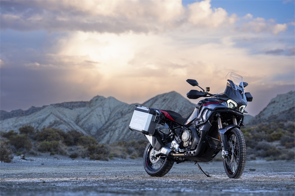 Für den Jahrgang 2026 wurde sie mit umfangreicher Serienausstattung ergänzt: Aluminium-Seitenkoffer, Sturzbügel, LED-Zusatzscheinwerfer sowie Hauptständer gehören nun zum Lieferumfang. Die Bereifung wurde auf Bridgestone AT41 umgestellt, der für hervorragenden Grip auf allen Straßen- und Offroad-Untergründen optimiert ist.