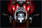 Visuell bleibt die Brutale tief verwurzelt in ihrer traditionsreichen Formsprache. Die Entwicklung beruht auf einer ästhetischen Evolution, die Moderne und MV Agusta-DNA verbindet. Markante Merkmale wie die Matrix-LED-Scheinwerfer mit Kurvenlichtfunktion, Carbon-Komponenten (Front, Motorabdeckung, Bellypan) und das exklusiv gestaltete Alcantara-Sitzpolster in Rot unterstreichen die italienische Designhoheit.