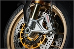 Die voll einstellbare Öhlins NIX 30 43mm TiN-Gabel vorne und der Öhlins TTX 36 Federbein hinten setzen Maßstäbe für Sensibilität und Abstimmungsvielfalt – alle hydraulischen und mechanischen Parameter (Federweg, Vorspannung, Zug-/Druckstufe) lassen sich individuell einstellen.