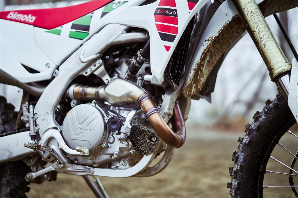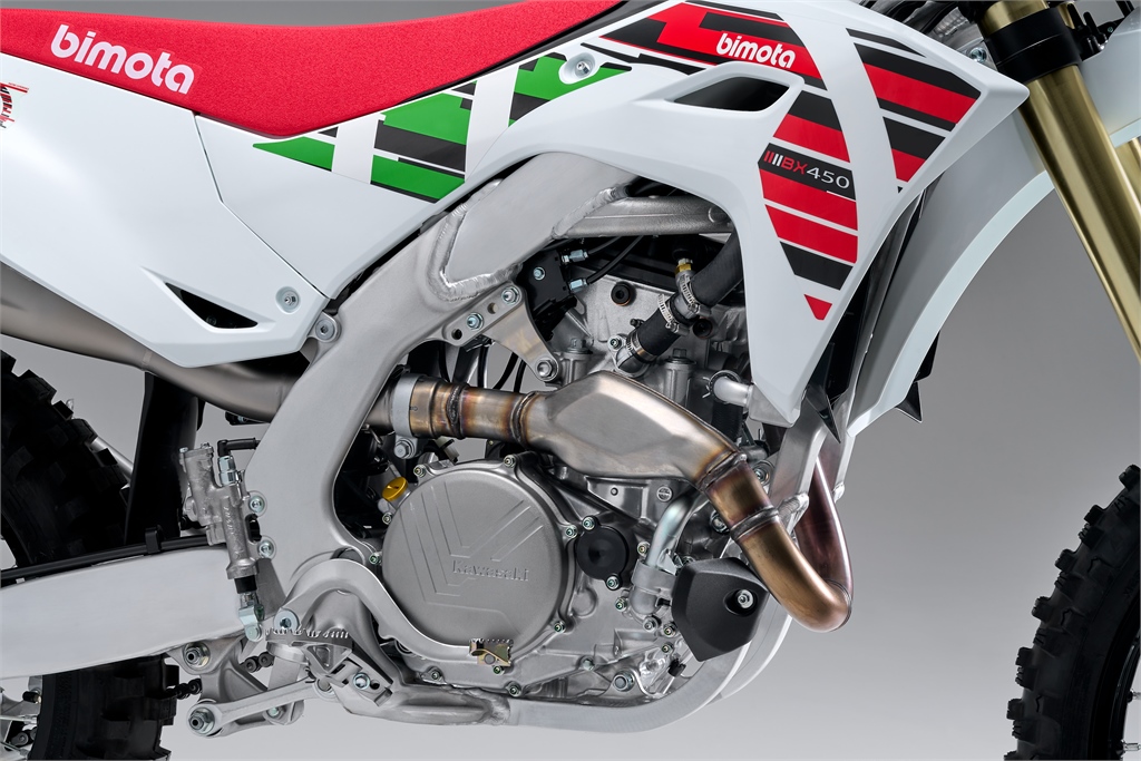 Bimota BX450: Italienische Edel-Enduro mit Kawasaki-DNA für den harten Offroad-Einsatz Mit der neuen BX450 steigt Bimota erstmals offiziell in den Enduro-Rennsport ein und überträgt seine seit über fünf Jahrzehnten gepflegte Rennsport-Philosophie vom Asphalt ins Gelände. Grundlage ist die bewährte Kawasaki KX450X mit flüssigkeitsgekühltem 449-cm³-Viertaktmotor, leichtem Aluminiumrahmen und rennfertigem Offroad-Fahrwerk. Diese wird von Bimota in Italien zu einem limitierten, voll wettbewerbstauglichen Enduro-Spezialmodell weiterentwickelt. Die BX450 verbindet Kawasaki-Technik mit italienischer Handwerkskunst, umfangreicher elektronischer Feinabstimmung (Athena GET ECU mit zwei Mappings, zehnstufiger Traktionskontrolle und Launch Control) sowie einem auf Enduro-Wettbewerbe zugeschnittenen Komponentenpaket inklusive Metzeler-Wettkampfbereifung, Akrapovič-Titan-Endschalldämpfer und variabler Tankkonfiguration. Die Maschine ist klar als Renn-Enduro positioniert und nicht als Freizeitspielzeug: Vorserienexemplare wurden bereits mit zahlreichen Siegen und einem Meistertitel in italienischen Serien wie Motorally und Raid TT erprobt. Die BX450 wird jetzt in limitierter Stückzahl über ausgewählte europäische Bimota-Händler angeboten. Die Preis- und Verfügbarkeitsangaben werden noch veröffentlicht. Damit adressiert Bimota anspruchsvolle Sportfahrer, Teams und ambitionierte Amateure, die ein hochspezialisiertes, ab Werk rennfertiges Enduro-Bike mit exklusivem Marken- und Technikanspruch suchen. Design und Stil Optisch knüpft die BX450 an die klare, technisch geprägte Formensprache der Kawasaki-KX-Offroad-Modelle an, veredelt diese aber mit typischer Bimota-Handschrift und exklusiven Details. Aggressive Linien, schlanke Verkleidungsteile und ein klar auf Funktionalität getrimmtes Plastikkleid unterstreichen die Wettbewerbsorientierung, während exklusive Farben und Grafiken – im Fall der BX450 die Lackierung „Bianco Lucido” – für eine eigenständige Präsenz im Startaufstellungsfeld sorgen. Der leichte Aluminiumrahmen ist bewusst sichtbar ins Design integriert und transportiert den High-Performance-Charakter des Bikes. Besonders hervorgehoben wird das neue Offroad-Logo „Bimota Experience“, das nicht nur als grafisches Element dient, sondern auch den Anspruch betont, Offroad-Rennmaschinen mit derselben Liebe zum Detail zu bauen, mit der Bimota seit Jahrzehnten Straßenrenner entwickelt. Trotz der klaren Rennsport-Ausrichtung achten die Entwickler auf eine stimmige Gesamterscheinung, bei der Optik und Funktion ineinandergreifen. Die BX450 wirkt mit ihrer kompakten, drahtigen Silhouette klar auf den Einsatz zwischen Zeitnahme und Zielflagge hin gestaltet: keine überflüssigen Anbauteile, keine tourenorientierten Kompromisse, sondern reine Enduro-Ästhetik in veredelter Ausführung. Motor und Leistung Herzstück der BX450 ist der flüssigkeitsgekühlte 449-cm³-Viertaktmotor von Kawasaki, wie er in der KX450X zum Einsatz kommt. Der Single ist für den harten Gelände- und Rennbetrieb konstruiert und überzeugt durch ausgeprägten Durchzug, spontanes Ansprechverhalten und hohes Drehvermögen. bimota nutzt diese Basis, um auf der langjährigen Offroad-Kompetenz von Kawasaki aufzubauen, statt bei null beginnen zu müssen. Die Besonderheit der BX450 liegt in der elektronischen Motorabstimmung: Über eine Athena GET ECU mit spezifischen Einspritzkennfeldern für dieses Modell stehen dem Fahrer zwei Renn-Mappings zur Verfügung, zwischen denen er wechseln kann. Diese erlauben es, Charakteristik und Leistungsentfaltung an Strecke, Untergrund oder persönliche Vorlieben anzupassen – etwa mehr Traktion und ein weicheres Ansprechverhalten für rutschige Passagen oder eine aggressivere Gasannahme für schnelle, griffige Abschnitte. Die ECU bietet zudem eine zehnstufige Traktionskontrolle, die über den am Lenker montierten SX1-Controller geschaltet werden kann. Damit lässt sich das Eingreifen der Traktionskontrolle sehr fein auf Bodenbeschaffenheit, Reifenwahl oder Witterung abstimmen – ein klarer Vorteil bei wechselnden Offroad-Bedingungen. Abgerundet wird das Paket durch einen Launch-Control-Modus, der für optimale Starts aus der Gatterreihe sorgt, indem er die Leistungsabgabe in den ersten Metern kontrolliert und das Durchdrehen der Räder reduziert. Über einen optionalen zusätzlichen Controller sind darüber hinaus individuelle Motorabstimmungen sowie weitergehende Einstellungen und Diagnosefunktionen möglich. Das eröffnet Teams und Tunern, die die BX450 an spezifische Bedürfnisse, Serienreglements oder persönliche Vorlieben anpassen möchten, neue Möglichkeiten, ohne dass sie aufwändige Hardwaremodifikationen vornehmen müssen. Fahrwerk und Handling Beim Fahrwerk greift Bimota bewusst auf die rennsport-erprobte Plattform der Kawasaki KX450X zurück: leichter Aluminiumrahmen, voll einstellbares Offroad-Fahrwerk und eine Geometrie, die auf präzises Handling und Stabilität in schnellen Passagen ausgelegt ist. Die Kombination aus geringem Gewicht und steifer Rahmenstruktur sorgt dafür, dass die BX450 schnell Richtungswechsel vollzieht, gleichzeitig aber stabil bleibt, wenn der Fahrer mit hoher Geschwindigkeit über Wellen, Kanten oder Spurrillen fährt. Als klar rennorientierte Enduro profitiert die BX450 von hochwertigen Anbauteilen, allen voran den Metzeler MCE 6 Days Extreme Supersoft-Reifen. Diese wurden speziell für Wettbewerbs-Enduros entwickelt und bieten hervorragenden Grip auf anspruchsvollen Untergründen, sei es auf weichen, losen Böden oder steinigen, technisch schwierigen Passagen. In der Supersoft-Spezifikation sind sie besonders auf maximale Traktion bei niedrigen Geschwindigkeiten und in schwierigen Sektionen ausgelegt. Das sorgt für Fahrfehler-Toleranz und Vortrieb in Sektionen mit wenig Haftung. Der leichte Akrapovič-Titan-Endschalldämpfer reduziert das Gewicht gegenüber einer Serienanlage und positioniert den Schwerpunkt vorteilhaft. Gle