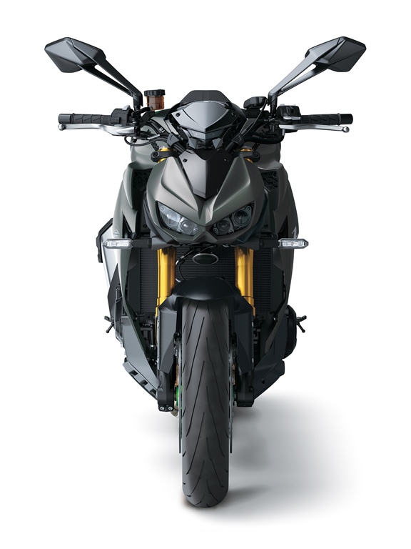 Eine höhere Schwungmasse und ein um 3 mm längerer Hub als bei der Kawasaki Z1000 tragen zum kraftvollen, drehfreudigen Charakter bei. Von mittleren bis hohen Drehzahlen begeistert der Motor mit kerniger Performance und einer direkten Gasannahme – typisch Z. Die Abgasanlage mit 4-2-1-Layout samt Vorschalldämpfer unterstreicht nicht nur den aggressiven Look, sondern spart auch Gewicht.