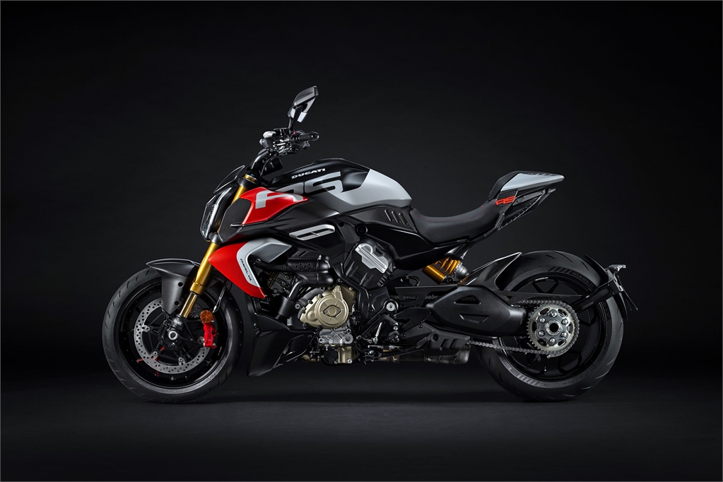 Die Diavel V4 RS erscheint als nummerierte Kleinserie im Rahmen der Ducati RS-Range und übernimmt hochleistungsfähige Komponenten, die direkt von Supersportmodellen stammen. Im Mittelpunkt stehen der 1.103-ccm-Desmosedici Stradale V4 mit Trockenkupplung, 182 PS (133,8 kW) und 89 lb-ft (120 Nm) Drehmoment. Ducati Power Launch und MotoGP-Technologien ermöglichen eine Beschleunigung von 0 auf 100 km/h in 2,5 Sekunden – ein Wert, der bislang nur Rennmotorrädern vorbehalten war. Hochwertige Carbon- und Titanteile, elektronische Fahrhilfen der neuesten Generation sowie eine gezielte Gewichtseinsparung machen die Diavel V4 RS zur schnellsten Serien-Ducati in Sachen Sprint.