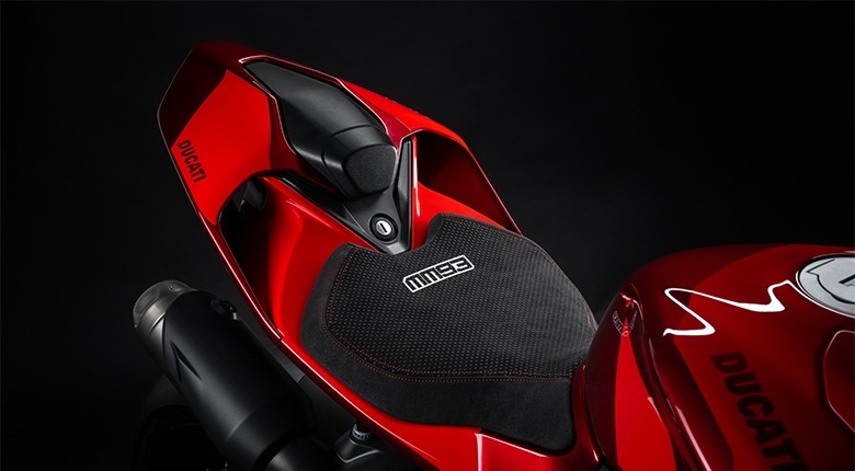 Die Panigale V2 MM93 nutzt den Ducati V2-Motor mit 890 cm³ Hubraum, 90° Zylinderwinkel und variabler Ventilsteuerung. Der Motor ist abgestimmt für eine Spitzenleistung von 120 PS bei 10.750 U/min und 93,3 Nm Drehmoment bei 8.250 U/min.