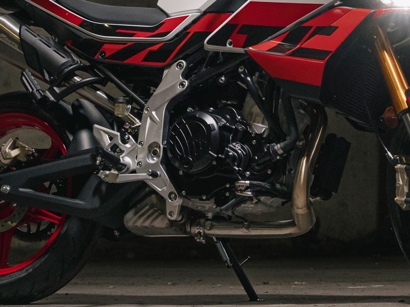 Neue MM460-Einzylinderbasis (Kooperation mit Motori Minarelli), Euro‑5+‑Single mit 463 cm³, Ride-by-Wire, Slipperkupplung und 6‑Gang-Getriebe; für die A2-Klasse ausgelegt. -