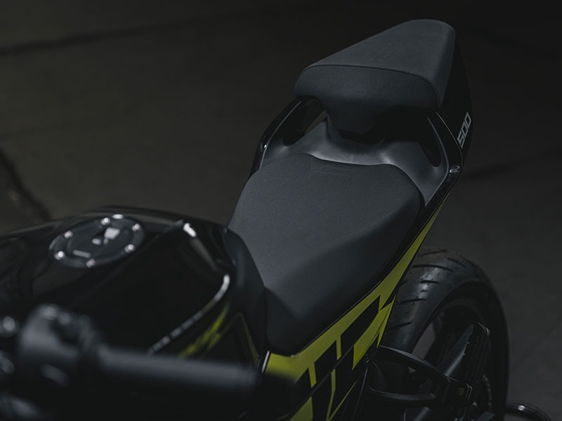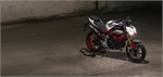 Sportliches Naked-Design „DARE TO PLAY?“: aggressive Linien, hochgelegter Edelstahl-Endschalldämpfer, sichtbarer Stahl-Gitterrohrrahmen und Aluschwinge. -