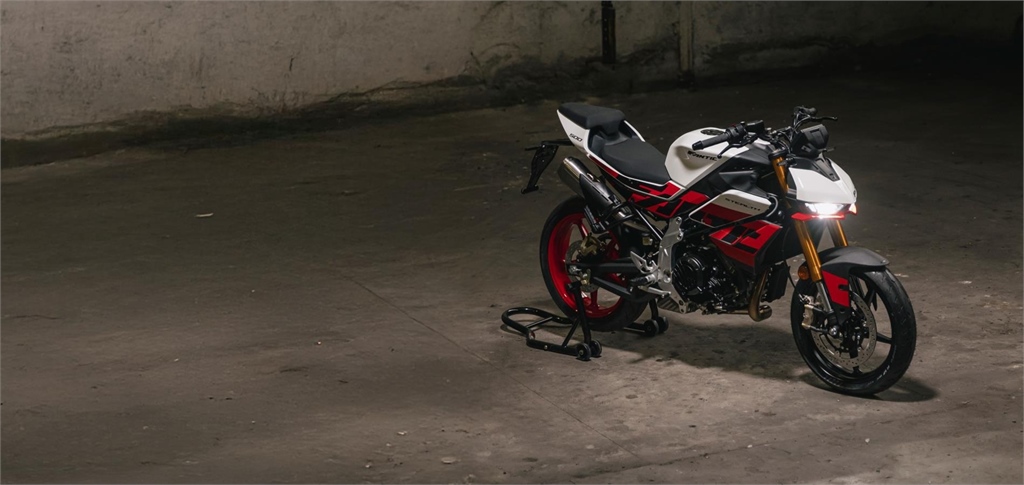 Farbvarianten: Yellow, Red, Acid Green und Racing White; neue Grafiken betonen Streetfighter-Charakter und italienische Herkunft. -