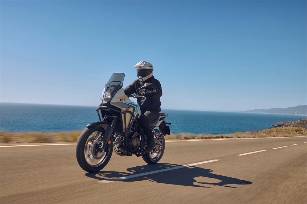 Als leichtes ADV-Bike gewinnt die NX500 zum Modelljahr 2026 dank optionaler Ausstattung mit der Honda E-Clutch an sportlicher Attraktivität. Nur Schalthebel und Gasgriff müssen damit beim Fahren noch bedient werden. Das verbessert den Bedienkomfort und überzuckert den unkomplizierten Charakter. Der Halbliter-Twin leistet weiter 48 PS/35kW, dazu ist eine sicherheitsfördernde HSTC-Traktionskontrolle an Bord. Keine Wünsche offen lässt das Fahrwerk mit 41 mm Showa Separate Function Fork Big Piston (SFF-BP) Upside-Down-Gabel und Showa-Monodämpfer mit Pro-Link-Umlenkung am Hinterrad sowie leichten Gussfelgen. Eine Doppelscheibenbremse vorne stellt sichere Verzögerung sicher. Für helles Licht sorgt bei Nachtfahrten ein LED-Scheinwerfer. Das 5 Zoll-TFT-Display integriert RoadSync-Konnektivität und wird über einen hinterleuchteten 4-Wege-Schalter bedient.