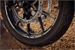 Seit dem Modelljahr 2024 ist die NX500 mit den aktuellen Aluminiumguss-Felgen ausgestattet. Der Wechsel von einem 7-Speichen-Design zu einem 5-Speichen-Design (weiterhin in Y-Form) half 800 Gramm vorne und 700 Gramm hinten einzusparen. Die daraus resultierende Reduzierung der ungefederten Massen sorgt zusammen mit den sorgfältigen Feder-/Dämpfer-Abstimmung für ein superbes Handling und Fahrgefühl in allen Situationen. Die Radgrößen betragen 19 Zoll vorne und 17 Zoll am Hinterrad. Aufgezogen sind Reifen mit Blockprofil in den Größen 110/80-R19 und 160/60-R17.
