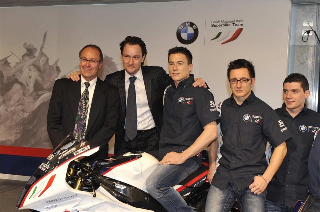 Die Anwesenheit des neuen Direktors von BMW Motorrad Motorsport, Bernhard Gobmeier, war bei diesem Anlass ebenso wichtig. Gobmeier unterstrich den Support, den der deutsche Hersteller dem italienischen Team liefern wird. Sie werden eine gleichwertige Maschine wie das interne Team erhalten. Der einzige Unterschied wird der Motor sein, welcher einen Schritt weiter unten angesiedelt ist, als der, den die Werksfahrer Leon Haslam und Troy Corser entwickeln.