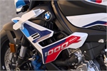 Als wesentlicher Punkt im Lastenheft der Entwicklungsarbeit für die M R stand neben der Antriebs- und Fahrwerkstechnik auch die Aerodynamik. Mit dem Ziel noch schnellerer Rundenzeiten auf der Rennstrecke und bestmöglicher Fahrstabilität bei hohem Tempo erhielt die neue M R Winglets im Bereich der vorderen Seitenverkleidungen. Bereits bei einer Geschwindigkeit von 160 km/h sorgen sie dank der erzeugten aerodynamischen Abtriebskäfte für eine Erhöhung der Vorderradlast (um 11 kg bei 220 km/h). Dem durch die geringe zusätzliche Stirnfläche und Formgebung der M Winglets leicht erhöhten aerodynamischen Widerstand begegneten die BMW Motorrad Entwickler mit einem im M Competition Paket enthaltenen, entsprechend gestalteten Windabweiser vor der Instrumentenkombination.