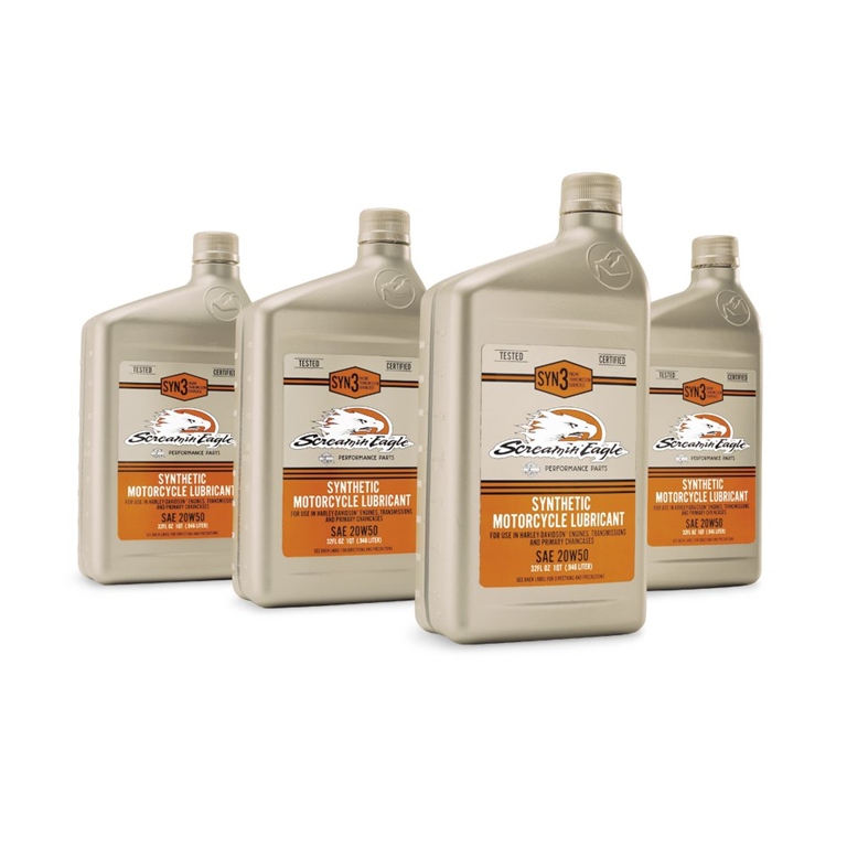 Doch Öl ist nicht gleich Öl und welches Öl eignet sich am besten für Ihre Harley? Grundsätzlich sollte ein Bike nur mit Motorradöl befüllt werden, denn bei vielen Motorrädern bilden Motor und Getriebe eine Einheit. Gerade für das Getriebe muss ein Öl äußerst scherstabil sein, um den hohen Druckbelastungen zwischen den Zahnrädern standzuhalten. Auch die Ölbadkupplung stellt spezielle Anforderungen, die einem Autoöl fremd sind. Aus diesem Grund empfiehlt die Motor Company einen vollsynthetischen High Performance Schmierstoff, der auf den Namen Harley-Davidson SYN3 Screamin’ Eagle Motorradöl hört. Er ist von Harley-Davidson entwickelt worden und ist speziell auf den Motor, das Getriebe und den Primärantrieb Ihrer Harley ausgelegt.