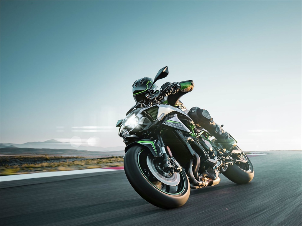 Noch ein PS-Monster. Kawasaki stellt in Mailand die Z H2 vor - ein Naked Bike, das vor brachialer Optik und Kraft kaum rollen zu können scheint: Der 998 ccm große Reihenvierzylinder arbeitet mit Aufladung wie die anderen H2-Modelle von Kawasaki und leistet 200 PS bei 11.000 Touren. Das maximale Drehmoment liegt bei 137 Nm bei 8.500/min. Unter Kontrolle gehalten werden soll die Z H2 über eine Reihe elektronischer Fahrhilfen, die durch eine zentrale Bosch-Steuerungseinheit dirigiert werden: Traktionskontrolle, intelligentes ABS, Kurven-Management-Funktion, wählbare Fahrmodi sowie eine Anti-Wheelie-Kontrolle sind bei der Kawasaki Z H2 standardmäßig an Bord.